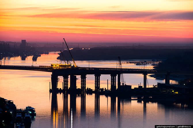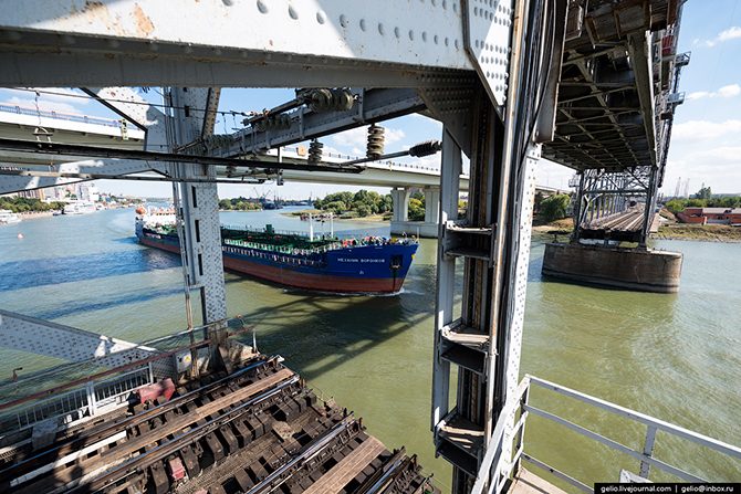 Мост состоит из трех пролетов, средний из которых поднимается для пропуска судов два раза в сутки.