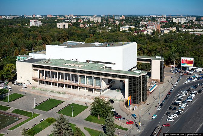 Здание театра, построенное в 1935 году, входит в список шедевров эпохи конструктивизма — в Лондонском музее истории архитектуры Россию представляют всего два макета: собора Василия Блаженного и здания Ростовского театра драмы. В основу архитектурных форм здания была положена стилизация гусеничного трактора, скорее всего, первого советского трактора «Коммунар». Неофициально театр так и называют — Трактор.