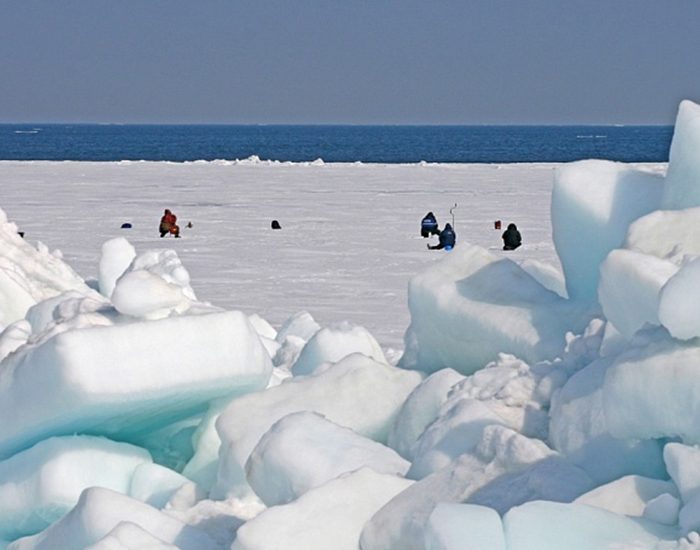 На Сахалине практически нет людей, не интересующихся зимней рыбалкой. Подледный лов корюшки и наваги — это обязательный туристический ритуал, увлекательный, азартный и даже забавный, если наблюдать за ним со стороны. Рыба подо льдом ходит косяками, а рыбаки, гоняясь за уловом, перемещаются косяками по льду.