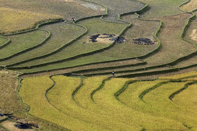 15. Увидев однажды рисовые террасы, создается впечатление, что выращивание этой культуры осуществляется с помощью ландшафтного дизайна. Рис является во Вьетнаме главной культурой из всех сельхозпродуктов. В горных районах страны рис выращивают террасным способом, причем террасы располагаются на довольно крутых склонах. Рисовые террасы славятся своей уникальной красотой и величием.