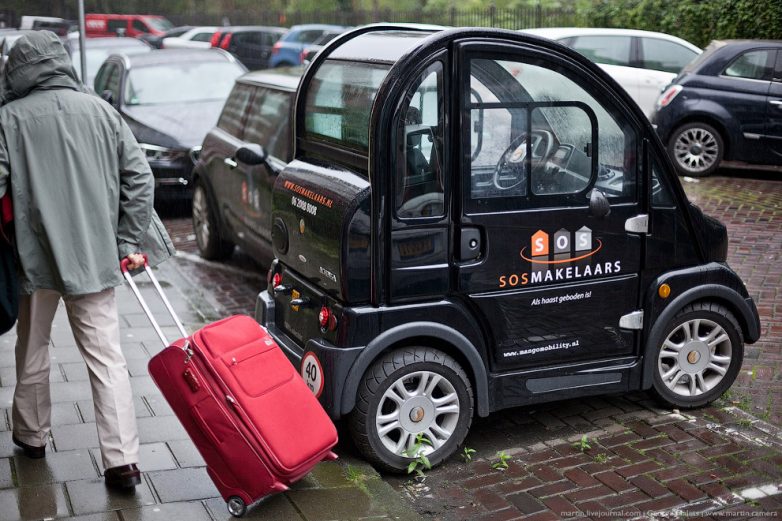 По велодорожкам также разрешено ездить на таких крошечных электромобилях. При это они даже двухместные!