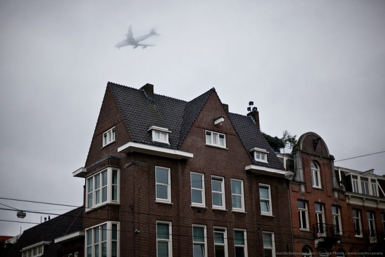 Самолеты в Амстердаме, из-за близости аэропорта, летают очень низко прямо над центром города.