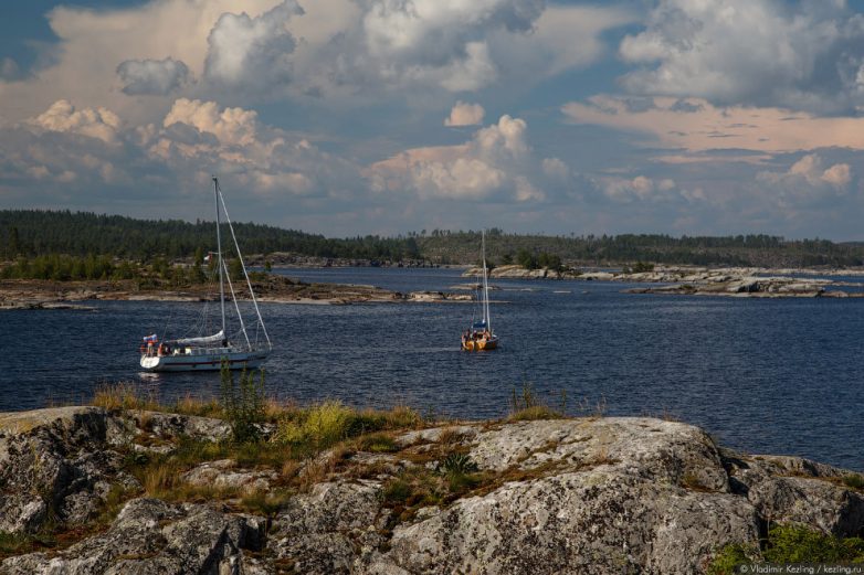 13. Летом в Ладожских шхерах довольно многолюдно. Туда-сюда мельтешат яхты, каяки, катера и прочая водная техника.