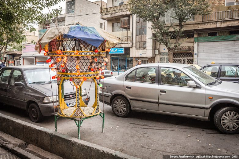 6. Помимо лавок и магазинов, в Иране широко распространена передвижная торговля. Не можешь купить себе лавку или арендовать помещение? Ничего страшного. Можно купить любой старый пикап или даже мопед и приспособить его для торговли. Нагружаешь товаром и едешь не спеша по улицам города, рекламируя свой товар в мегафон или попросту останавливаясь на людных перекрестках.