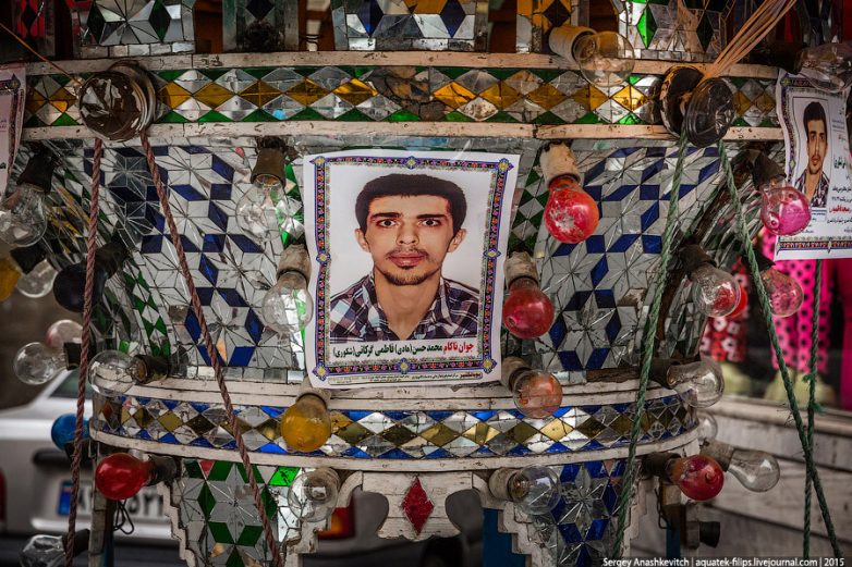 38. Гуляя по Тегерану во второй день, на тротуаре мы увидели вот такую необычную конструкцию. Сначала ее назначение оставалось загадкой, но затем выяснилось, что ее назначение сугубо ритуальное — это Фейсбук мертвых.