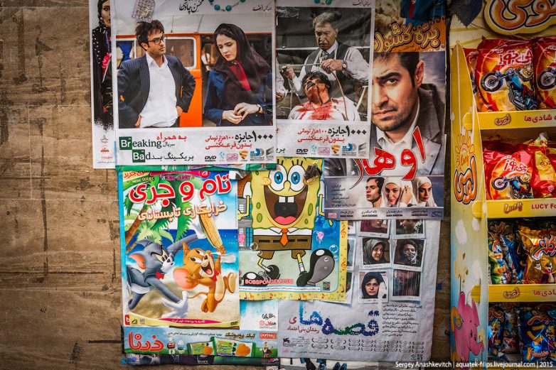 Например, мультики Диснея можно купить в любой точке по продаже фильмов на дисках, а Губка Боб и вовсе кумир иранских детишек.