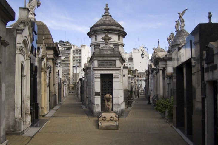 Архитектурное великолепие кладбища Реколета поражает, однако в этот список оно попало не из-за него, а из-за ряда страшных и необычных историй о тех, кто там похоронен: рядом с могилой Эвиты Перон, на которой всегда лежат свежие цветы, похоронены Руфина Камбасерес, девушка, которая была погребена заживо и вышла из комы прямо в гробу, и Давид Аллено, бедный могильщик, который тридцать лет копил деньги на участок для погребения, а накопив, совершил самоубийство.