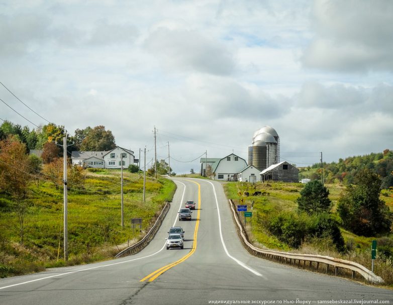 25. Типичная картина для нью-йоркской глубинки. Всюду фермы, коровники, амбары и силосные башни. Вопреки расхожему мнению, далеко не все амбары а Америке красного цвета.