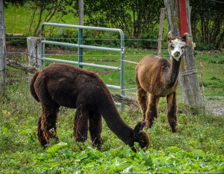 33. Ферма на которой разводят альпак. Очень забавные животные. Выглядят так, будто овца загуляла со страусом.