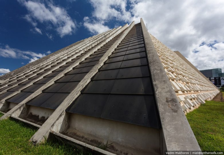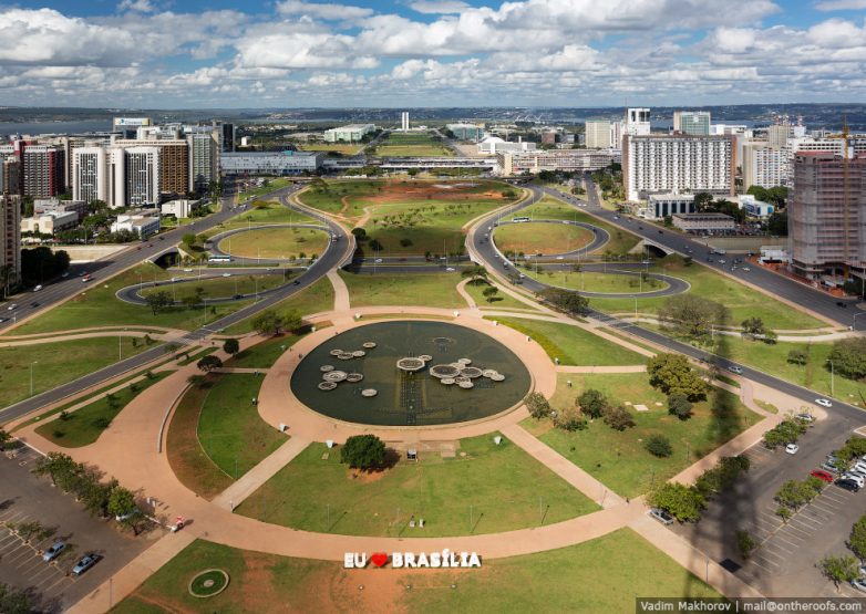 26. Планировка города очень необычна. С высоты птичьего полёта кажется, что сам город с его улицами и кварталами напоминает летящий реактивный самолёт. И это превратило Бразилиа в город контрастов. В самом центре можно встретить непревзойдённые творения архитектора Оскара Нимейера — административные и общественные здания. Но стоит уйти на «крыло» самолёта, сразу натыкаешься на проституток и крыс. В одном из таких районов мы жили.