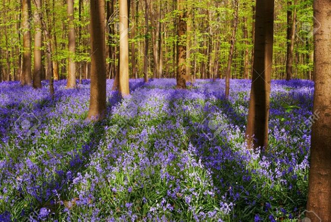 Невероятно красивый древний лес Халлербос во время цветения колокольчиков.