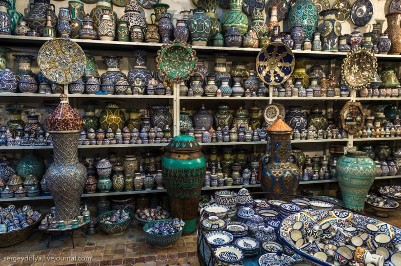 Ну, и конечно, посуда. Мне кажется, она смотрится лучше всего из того, что делают в Фесе. По крайне мере эти узоры на тарелках и кувшинах выглядят симпатично: