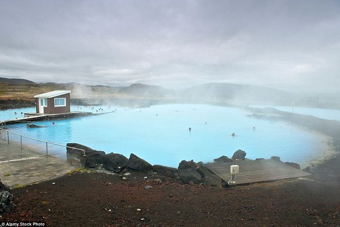 Озеро Миватн образует лагуну, в которой можно принимать горячие ванны.