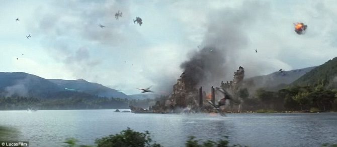 Хотя лес Дина использовался в трейлере в качестве места битвы между Кайло Реном и Финном, место очень напоминает на дом Йоды или планету Эвоков.