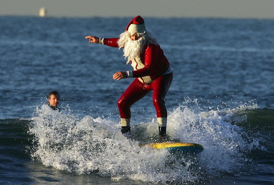 В Австралии Санта Клаус появляется на доске для сёрфинга