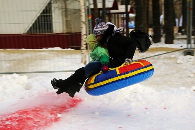 Провести выходные, катаясь на тюбинге, можно прямо в центре столицы — в «Музеоне». Здесь в прошлом сезоне соорудили 20-метровый спуск с крыши велокафе. Под горкой — прокат для тех, кто без «ватрушки». Музеоновские тюбинги яркие и модные, как и сам парк.