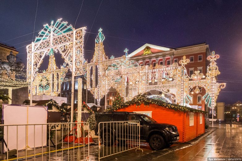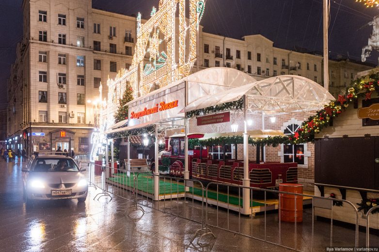 Дальше на Манежной тоже ярмарка. Вот здесь переборщили со светом. Получилась какая-то каша.