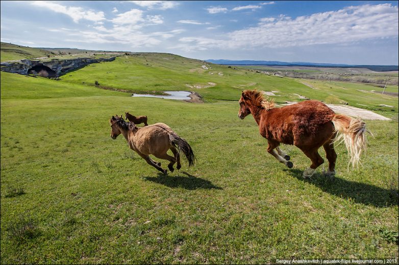 Апрель. Одичавшие лошади у подножия Белой Скалы.
