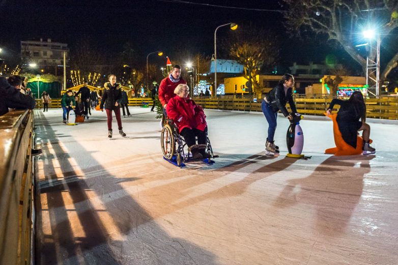 Рядом с ярмаркой работает каток. Есть даже специальные приспособления для людей на инвалидной коляске. Рождество для всех: