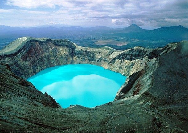 Россия известна своими экстремально низкими температурами, однако даже на одной из самых северных её частей, на Камчатке, есть поразительное место, которое стоит посетить. Малый Семячик — это стратовулкан, чей кратер заполнен горячей кислотной водой. Он украшает своей красотой кристально голубой кислоты суровые окрестные ландшафты.