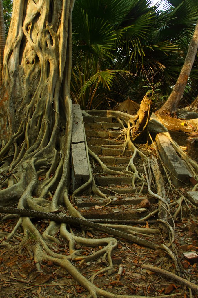 Сейчас от зданий острова почти ничего не осталось – корни и ветки оплели их, проросли насквозь. В 1941 году страшное землетрясение разрушило значительную часть инфраструктуры и вынудило многих покинуть остров. Штаб-квартира была перенесена в соседний Порт-Блэр. А во время Второй мировой войны на острове появились японцы и британцы спешно эвакуировались – на этот раз окончательно и навсегда. И хотя японская оккупация завершилась в 1945 году, больше никто никогда не пытался здесь поселиться. Сейчас на остров Росс приезжают только туристы.