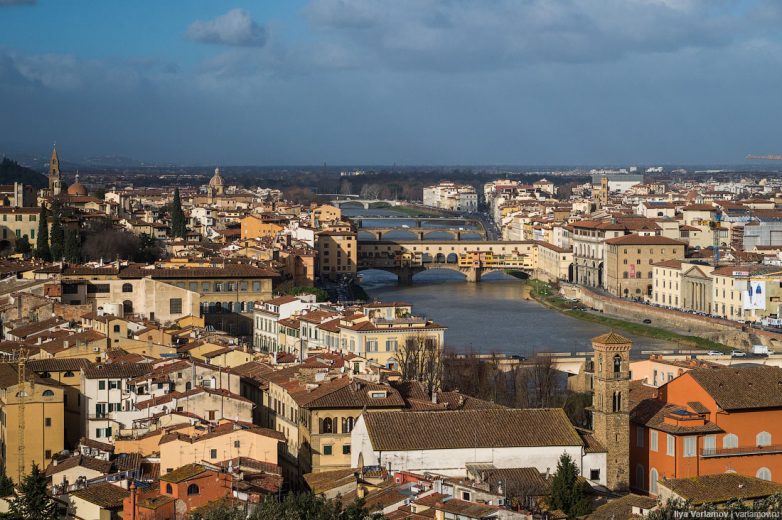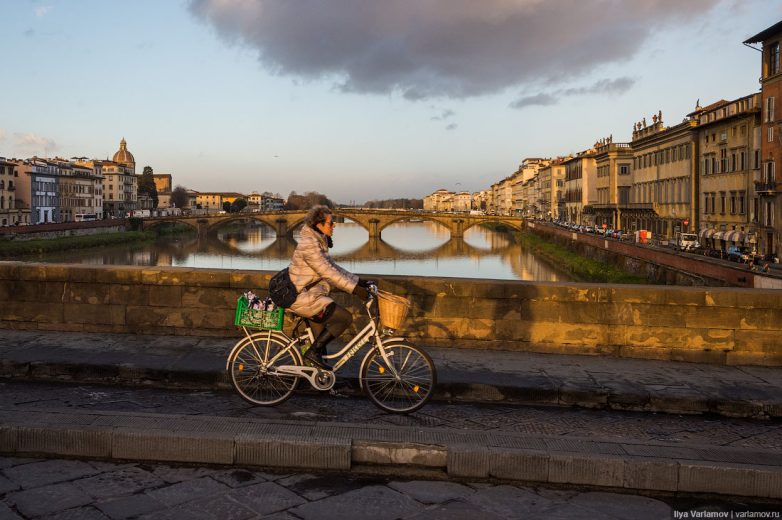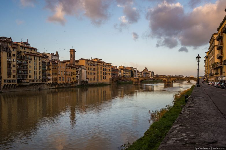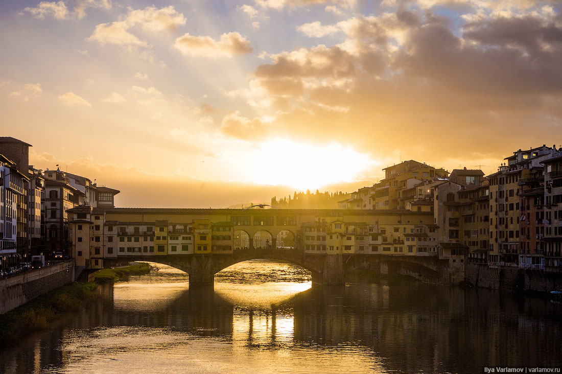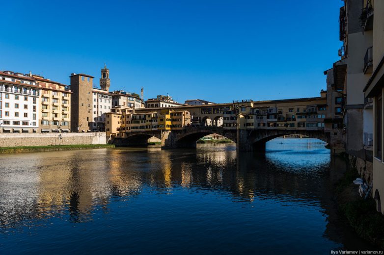 Флоренция знаменита своими мостами. Город стоит на реке Арно, и первые мосты через неё строили ещё римляне. Долгое время (до середины XX века) во Флоренции было шесть мостов, и у всех, кроме одного, была сложная судьба: они строились, разрушались, отстраивались заново, расширялись, удлинялись, переносились вниз или вверх по течению.