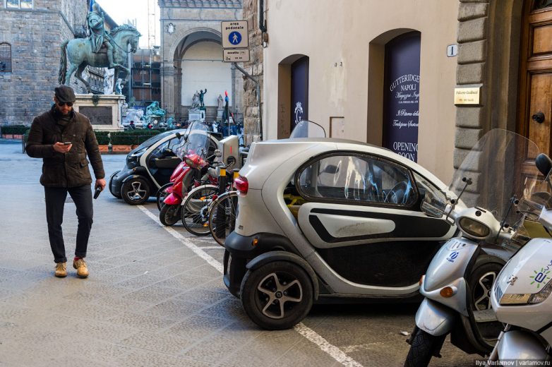 Во Флоренции популярные парклеты — это когда вместо парковочного места делают небольшое общественное пространство.