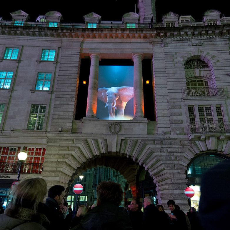 Проекции в 30 местах по всему городу, включая знаменитые Пикадилли и Риджент-стрит, Трафальгарскую площадь, завораживающие инсталляции на улицах и площадях, и удивительные создания в небе — это далеко не полный список.