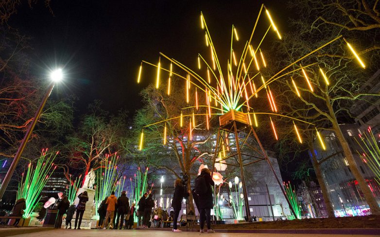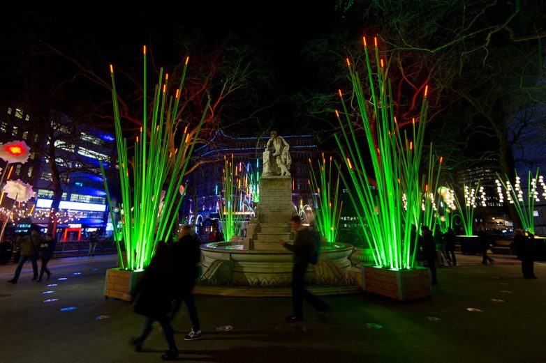 24. Световой сад на площади Лестер-сквер. Это был Фестиваль света в Лондоне 2016.
