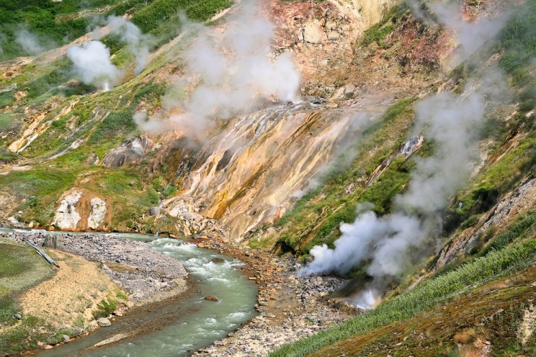 Впрочем, и сегодня далеко не все могут увидеть камчатские гейзеры. Во-первых, добраться к ним можно разве что на вертолете, а во-вторых, посещение исключительно с разрешения администрации. Долина гейзеров представляет собой ущелье шириной до 4 км и длиной 8 км, по дну которого протекает река Гейзерная. На протяжении 6 км от устья реки склоны каньона «облепили» около 40 гейзеров, термальных источников, грязевых котлов и вулканчиков.
