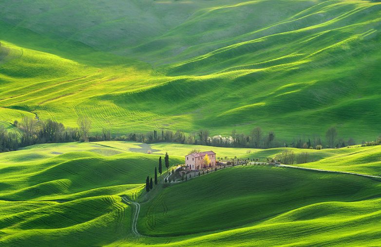 Этот райский уголок находится в самом сердце Италии. Северная часть Тосканы густо покрыта виноградниками и лесами, в то время как её южная часть – это бескрайние поля и холмы, на которых мирно пасутся стада овец, позвякивая колокольчиками. Весной поля покрываются густым зелёным ковром, к осени же палитра местной природы приобретает более разнообразные оттенки.