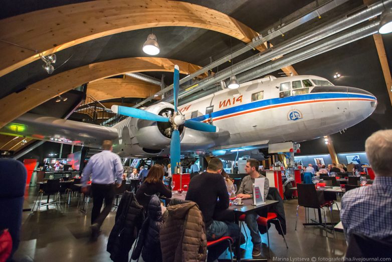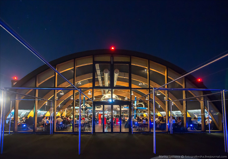 А все потому, что ресторан сделан в виде ангара, внутри которого стоит самый настоящий Ил-14!