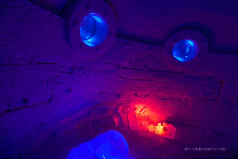 Эта комната выполнена руками китайских мастеров. Огромная фигура медведя из снега и имитация северного сияния на сводах зала.