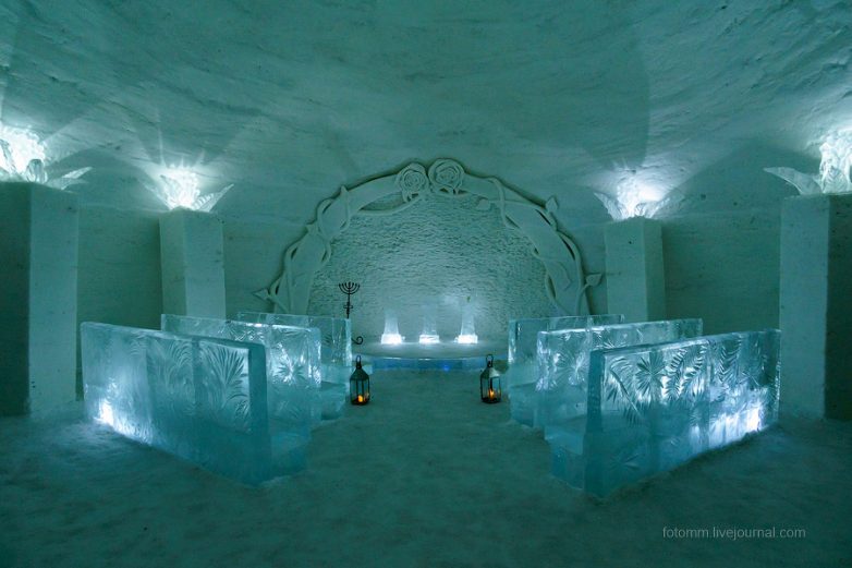 Будь ребенком, я и вправду бы поверил в то, что попал в дом Снежной Королевы. Гостиничные номера, ресторан, кинотеатр, фантастические цвета, формы и все это изо льда и снега — такое возможно только в сказке!