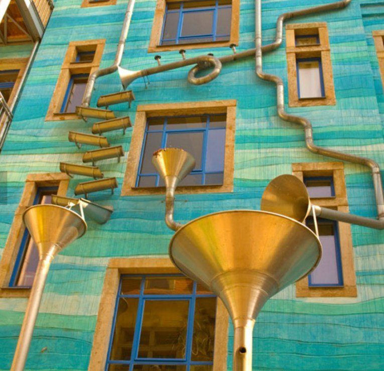 Искусство сточных труб обычно не является тем, что привлекает туристов, однако эта стена буквально превращает дождь в музыку!