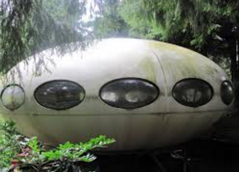 Этот дом в форме НЛО построен в стиле 1960-ых годов. Его можно легко представить себе в таких старых научно-фантастических фильмах как «Затерянные в космосе».