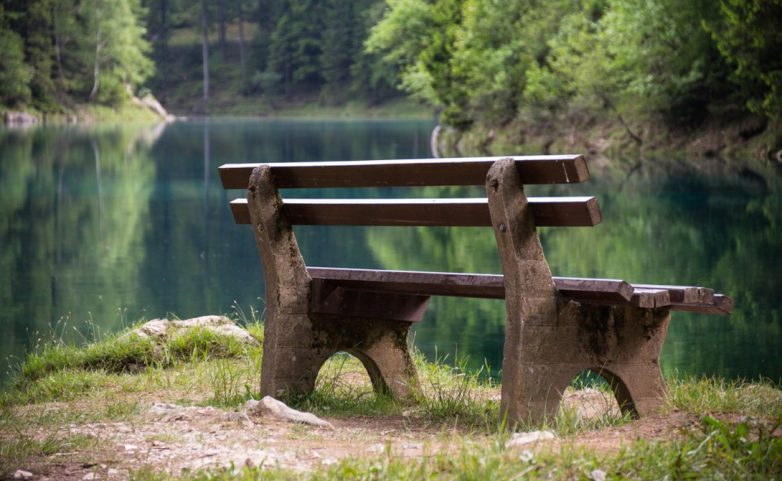 А вот и скамейка, стоящая, обычно, на берегу озера.