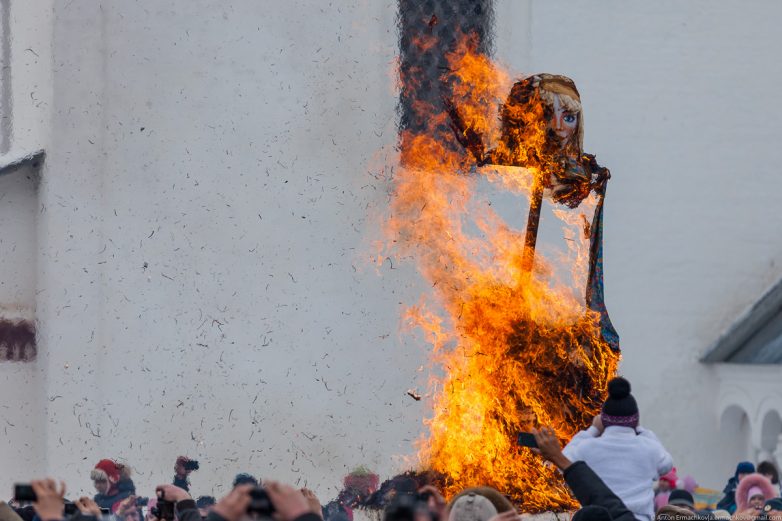 И как раз успеваем к сожжению чучела Масленицы: