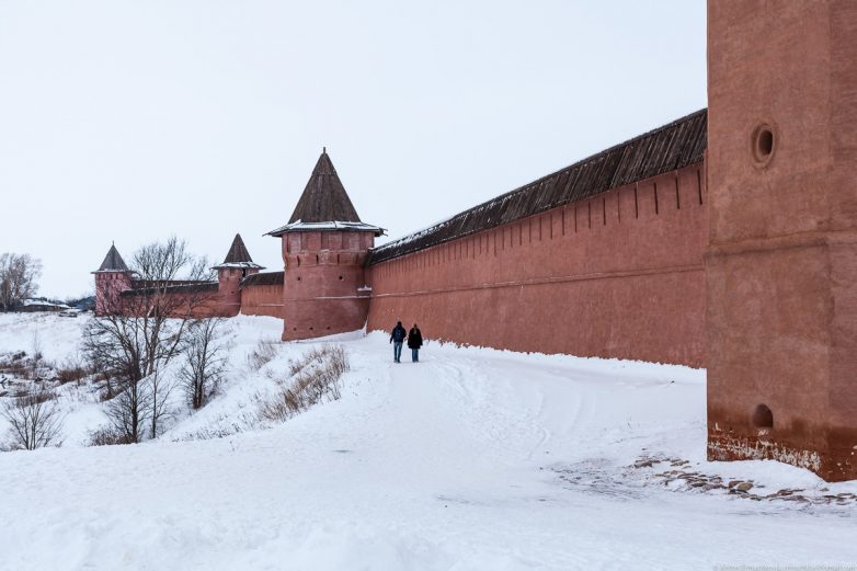 Мощные стены Спасо-Евфимиева монастыря, основаного в 1352 году: