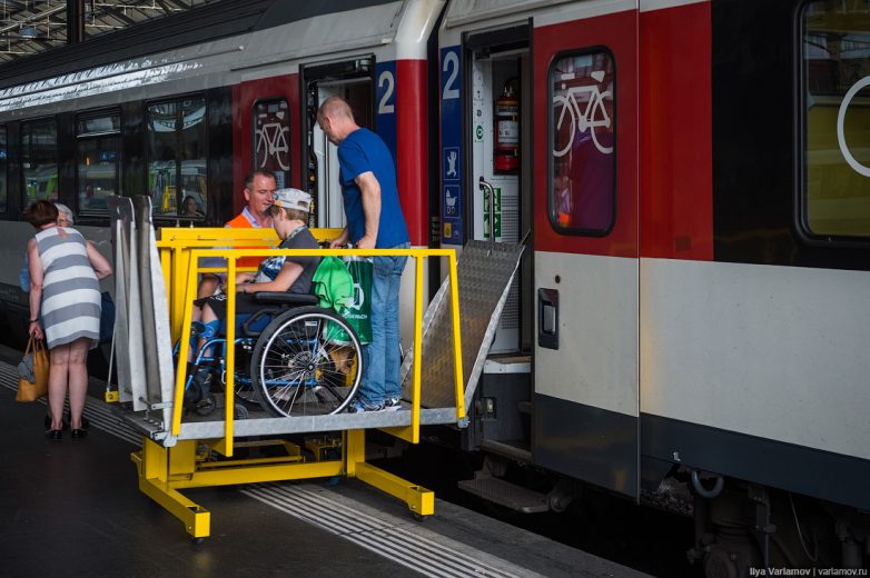 Для инвалидов есть специальные подъемники, никаких проблем с погрузкой маломобильных людей в поезд не возникает.