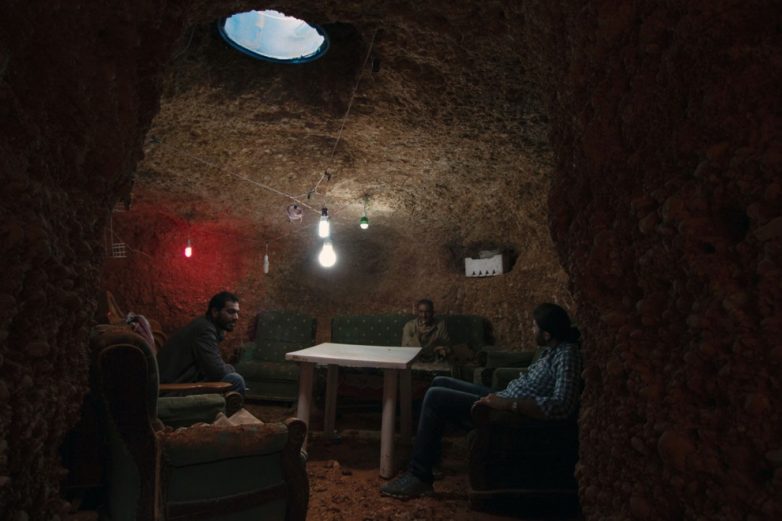 Бывший бурильщик скважин Абу Амер (в центре) со своей семьёй в подземном доме на окраине Алеппо, 29 октября 2015 года. Укрытие, которое Абу Амер строил весь прошлый год, состоит из четырёх комнат, имеет вентиляцию и освещение.