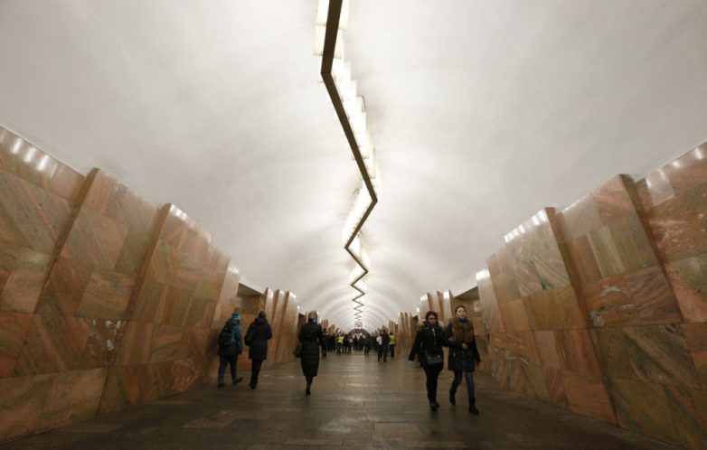Станция метро «Баррикадная» в Москве, Россия, 25 февраля 2016 года.