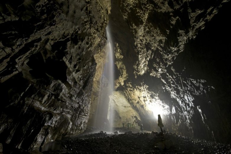 Главная камера пустоты Гепинг Джилл, крупнейшей подземной пещеры Великобритании с природным выходом на поверхность, которая находится недалеко от Инглтона, Англия, 26 мая 2015. Глубина пустоты составляет почти 100 метров.