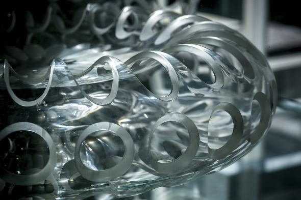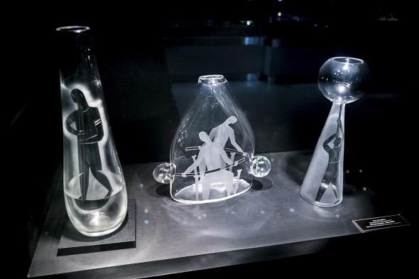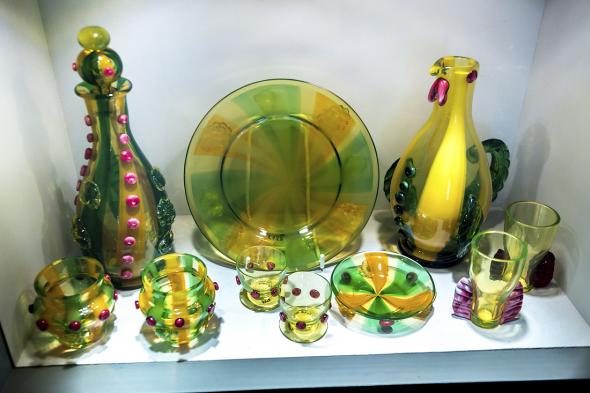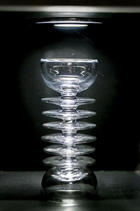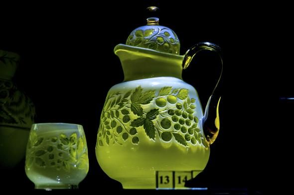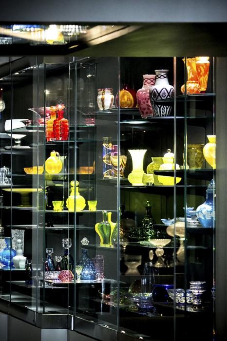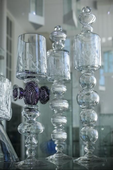 В затемнённых залах представлены самые великолепный образцы стеклянной посуды.