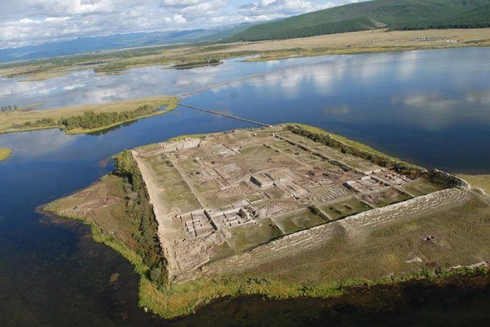 Впервые это сооружение посреди озера было обнаружено чуть более столетия тому назад, совсем рядом возле границы России с Монголией.