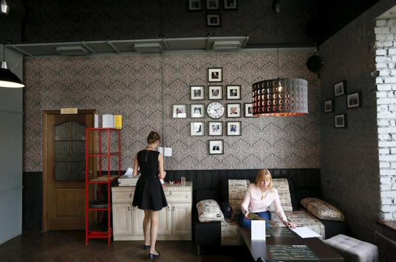 Клиенты кафе могут насладиться уютной атмосферой. На стенах — снимки российского президента разных лет.