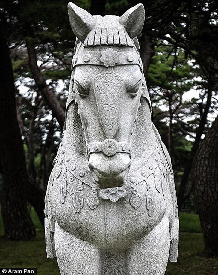 Статуя коня, установленная на могиле короля Конгмина в память переноса столицы из горной крепости Хвандо в Пхеньян в 427 году н.э.