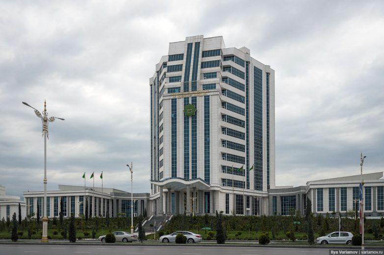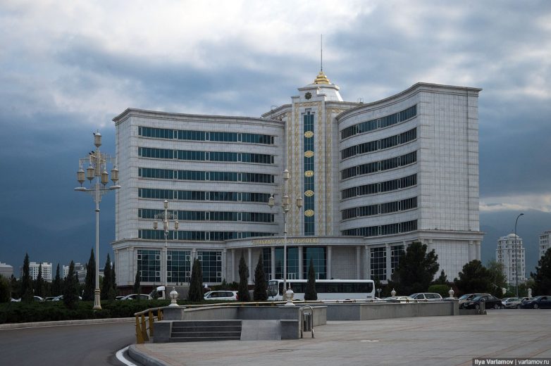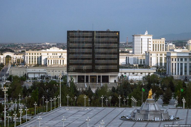 Некоторые здания построены в стиле «Сбербанк». Каждый житель России знает, что самое уродливое и бездарное здание в любом городе — это центральный офис Сбербанка. Примитивное и нелепое сочетание объемов, цветное зеркальное остекление – всё это хорошо нам знакомо. Зараза просочилась и в Ашхабад.