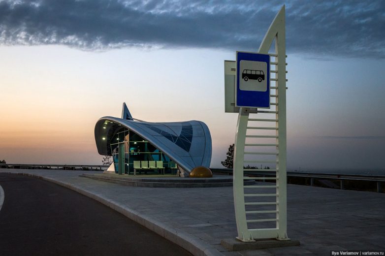 Так как летом в Ашхабаде жарко, на главных остановках есть закрытая зона с кондиционером.