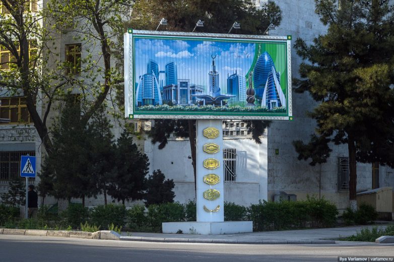 Это очень скромный щит в старом городе. На нем, кстати, реклама архитектуры Ашхабада.